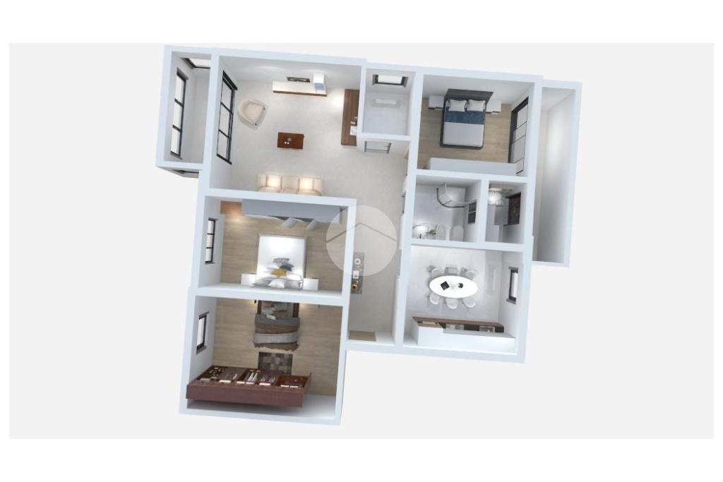 L'immobile è composto da corridoio, cucina abitabile con doppio servizio e uscita sul balcone, tre camere da letto, bagno con doccia finestrato, ripostiglio e soggiorno con adiacente balcone.