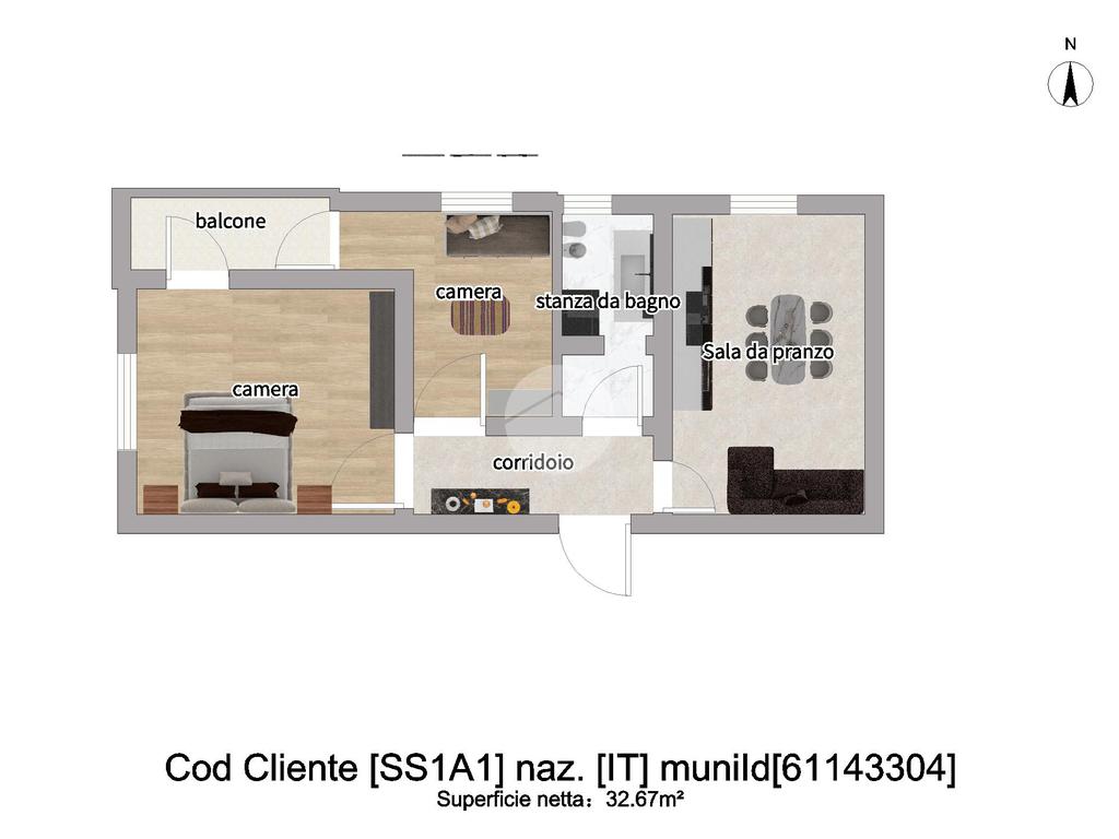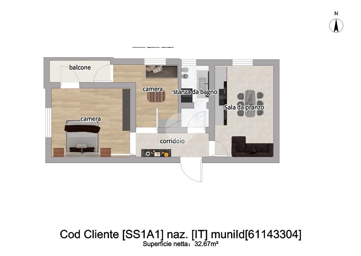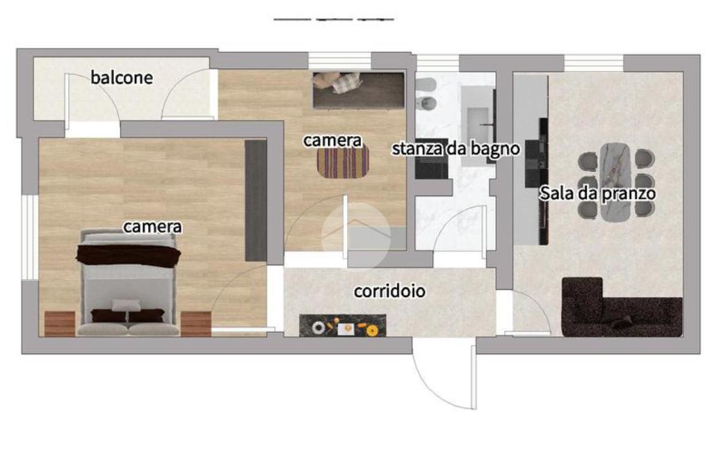 L'immobile è cosi composto: corridoio, sala con angolo cottura, antibagno e bagno con doccia finestrato, camera da letto ampia e un'altra camera entrambe con uscita sullo stesso balcone.