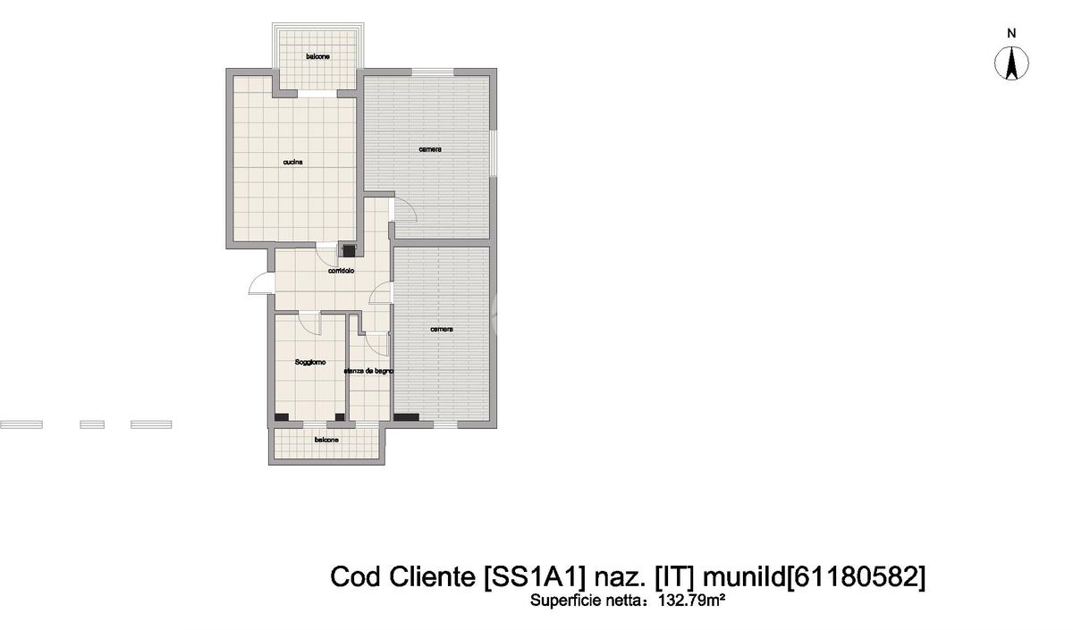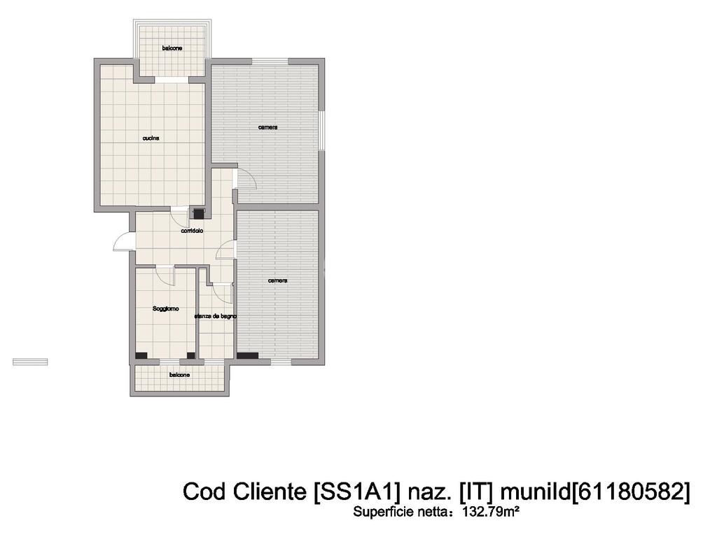 L'immobile è composto da un soggiorno con balcone chiuso, una cucina abitabile anch'essa con balcone, camera da letto, cameretta e bagno finestrato con doccia.