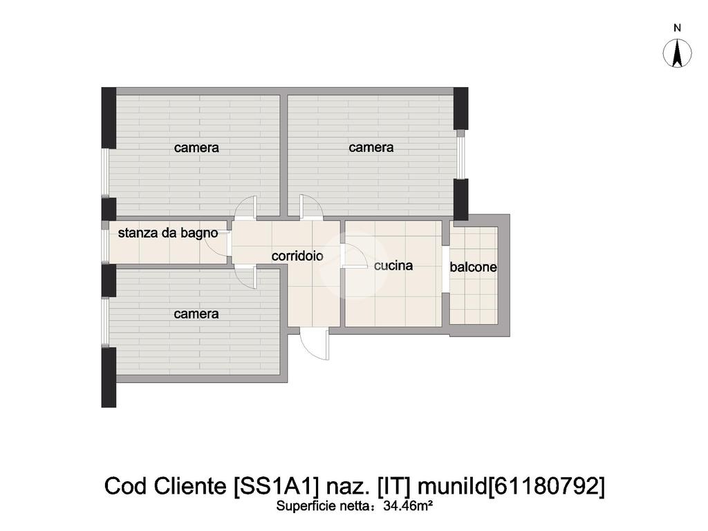 L'immobile è composto da: ingresso, cucina abitabile con balcone, soggiorno, due camere da letto e un bagno finestrato con vasca.